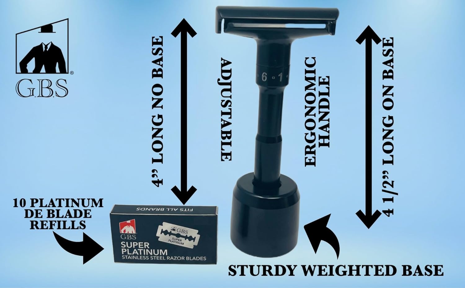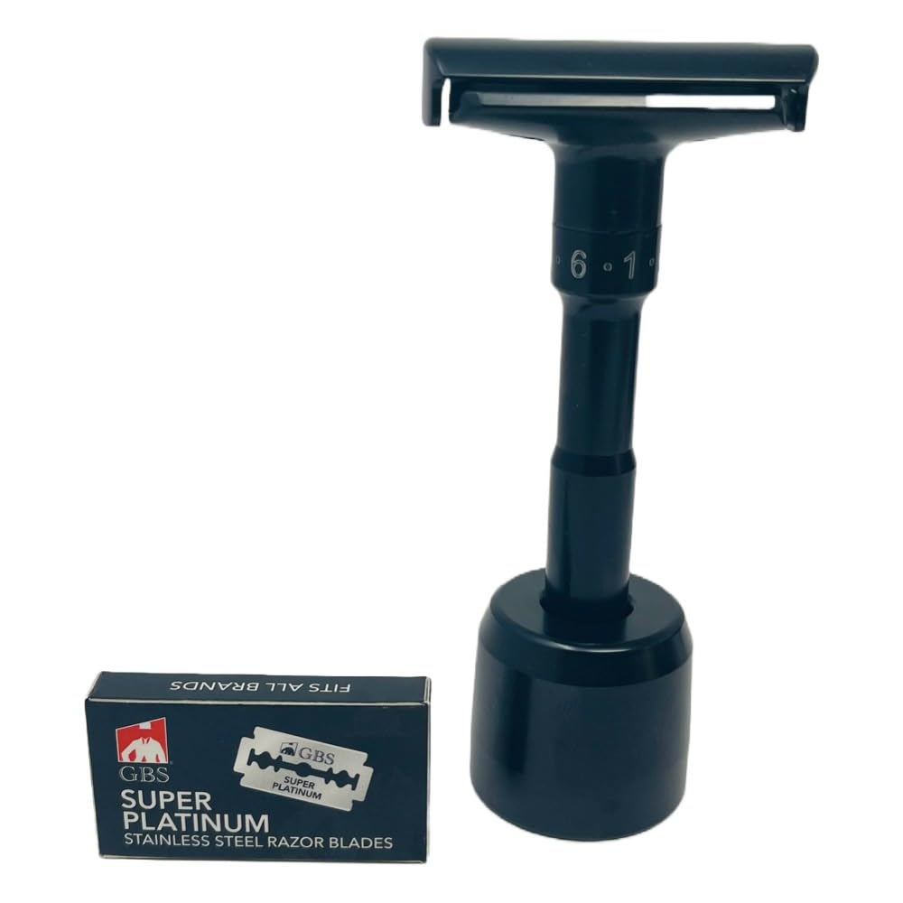 Razor Double Edge Adjustable Razor with 10 Refill DE Blades Gents (BLACK OR MATTE)