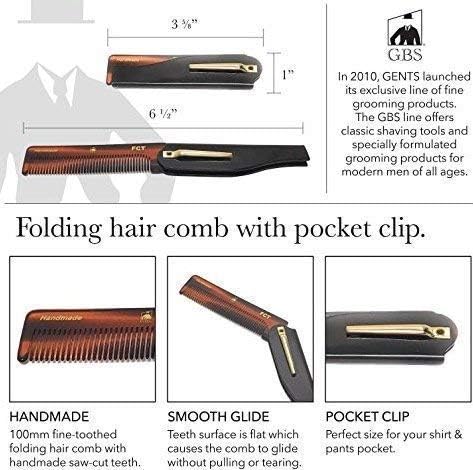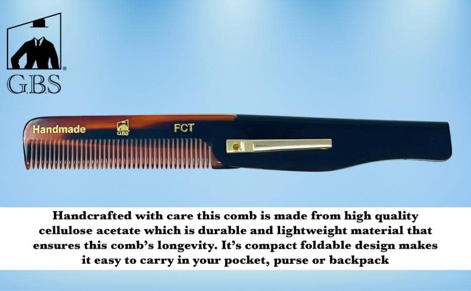 G.B.S Folding Comb Fine Toothed Dressing, Grooming, and Styling Comb for Thinning Hair Beard Men Women Hand-Made Cellulose Acetate, Saw-Cut & Hand Polished
