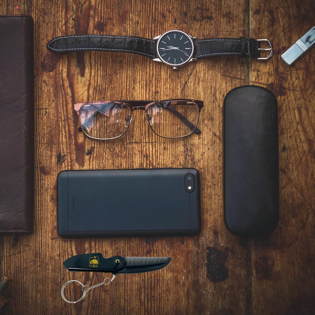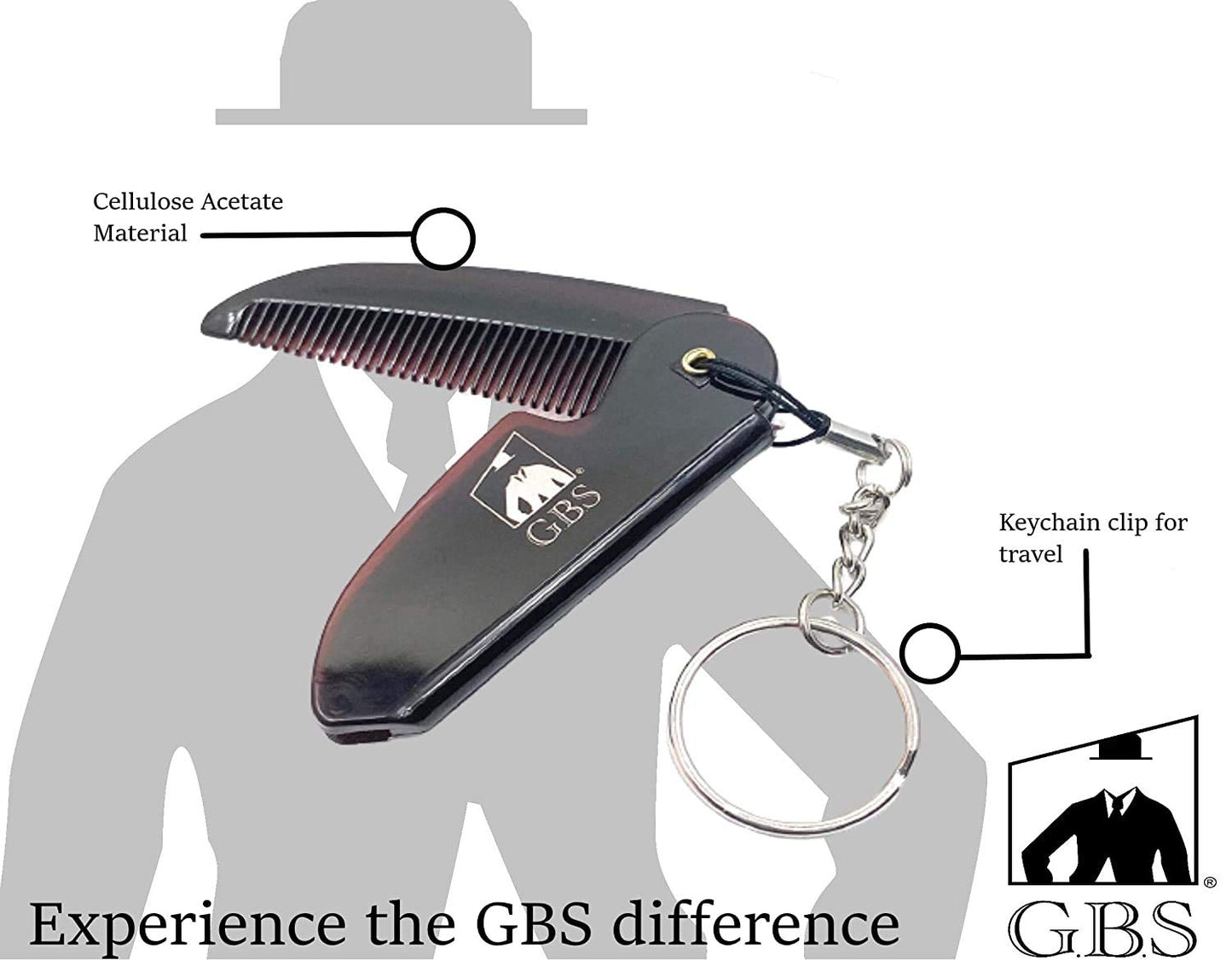 G.B.S Handmade Saw-cut Men's Beard Mustache Folding Comb - with Key chain - Relax Scalp- Styling For All Length Hair Types - Travel Kit Sized for Grooming | Effortless Glide: Polished | Fine-Tooth