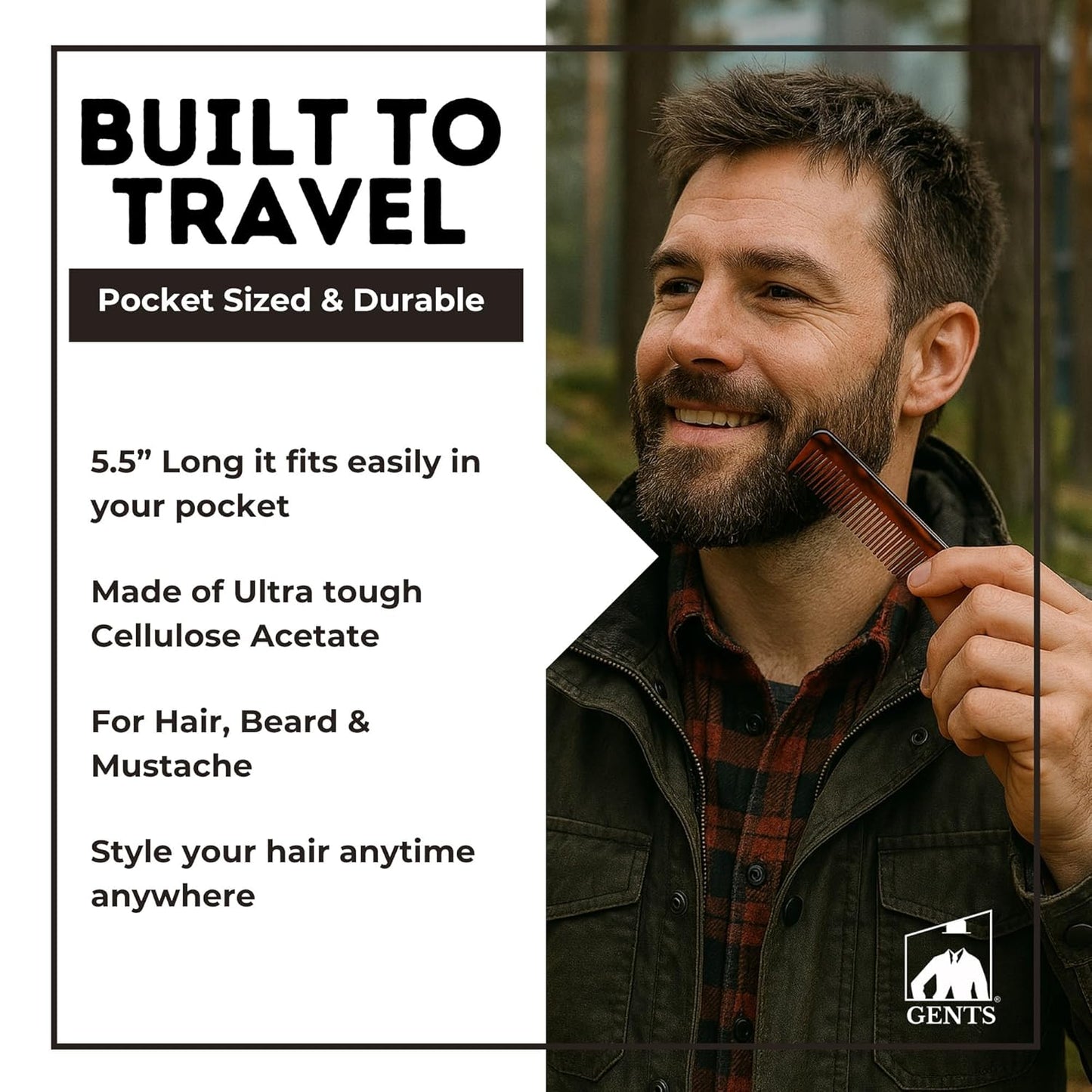 G.B.S PCT Pocket Comb Fine Toothed Dressing, Grooming, and Styling Comb for Thinning Hair Beard Men Women Hand-Made Cellulose Acetate, Saw-Cut & Hand Polished